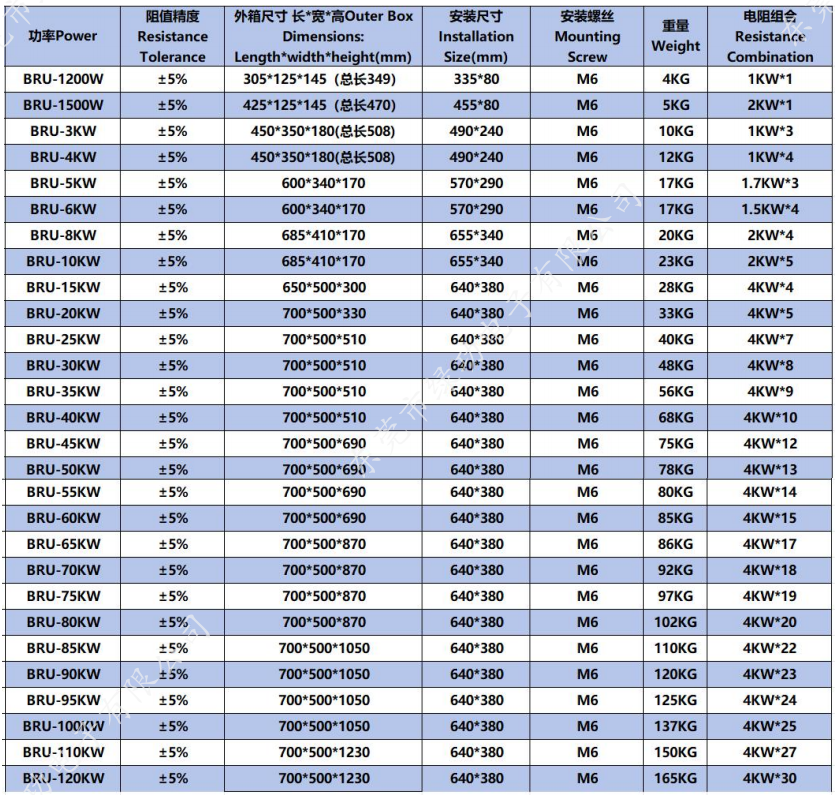 本品是由波纹电阻器组合而成的电阻箱,适用于大功率,大电流的制动设备,试验测试设备,电梯, 起重等变频器的能耗制动回路中。工作电压直流 500V-2000V,额定功率可叠加至 200KW 。